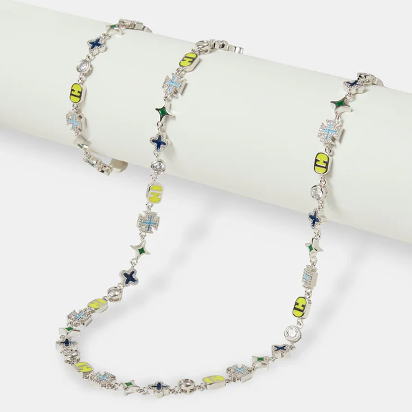 Halskette mit Rolo-Edelsteinen und grünem Emaille-Motiv