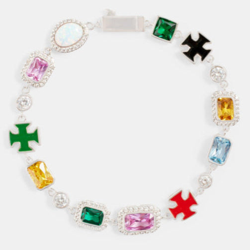 Halskette mit Tennis-Edelsteinen und schwarzem Motiv