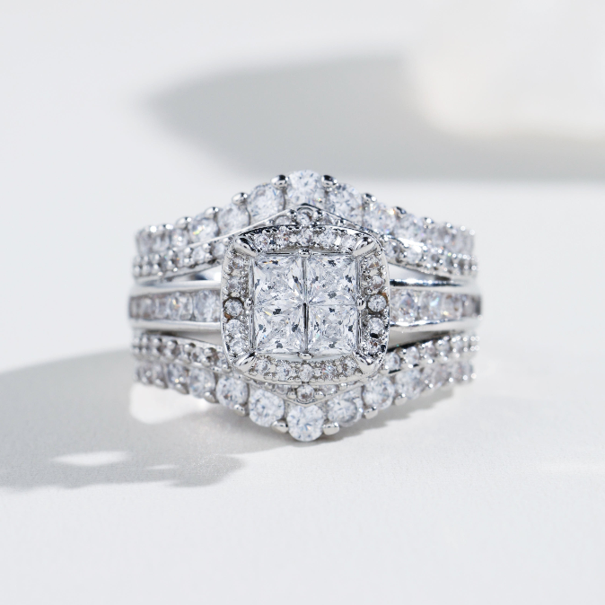 Luxuriöses 4-teiliges Ringset im Kissenschliff