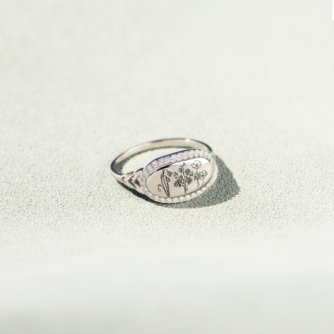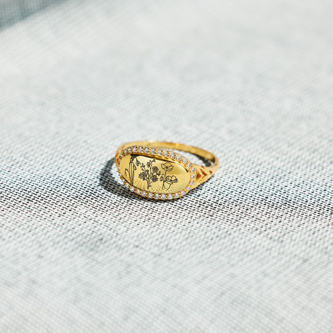 Jede Blume ist einzigartig, und so ist auch jeder Mensch in Ihrem Leben. Personalisieren Sie diesen zarten Ring mit bis zu 6 Geburtsblumen, um all jene, die Sie lieben, nahe bei sich zu haben.