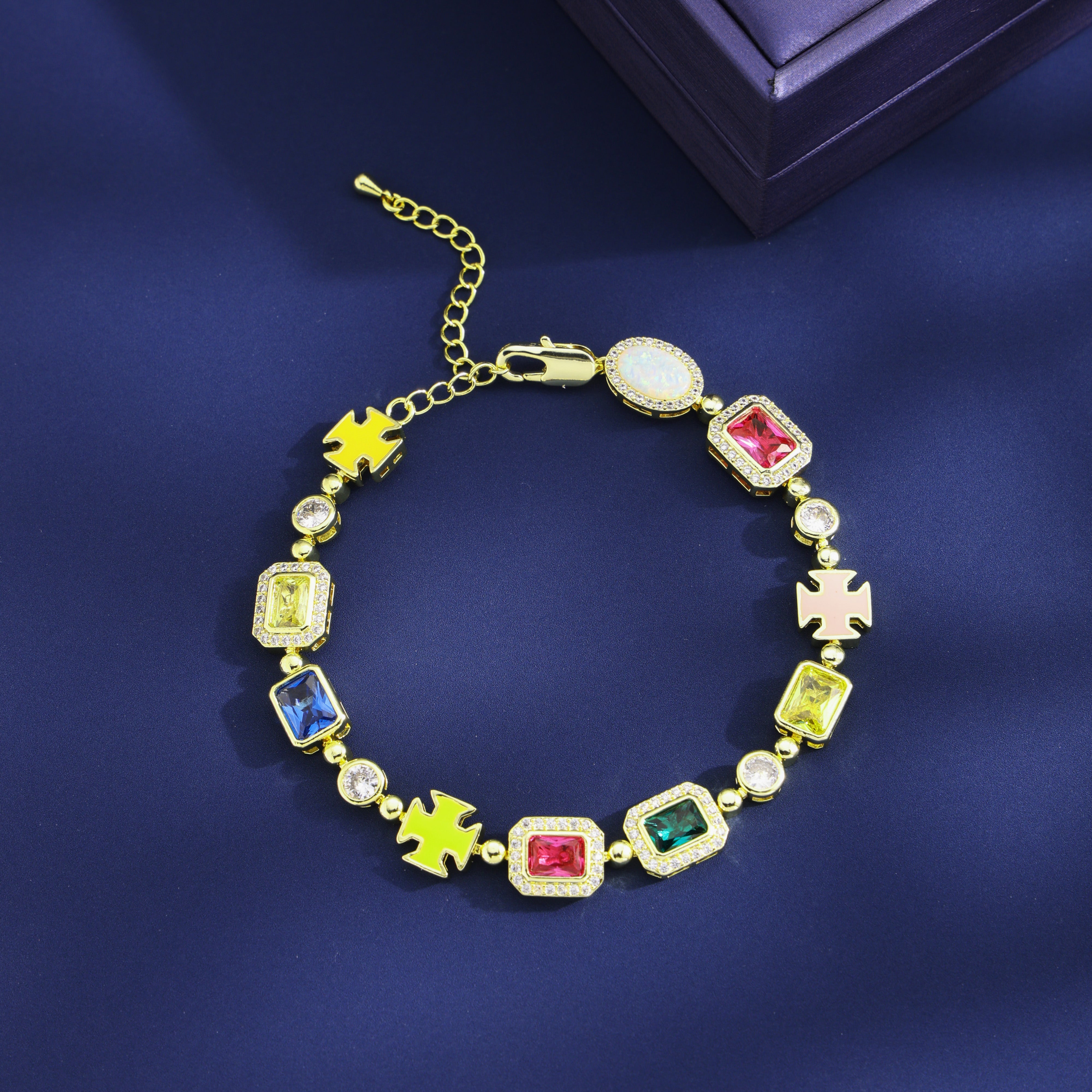 Ein exklusives Stück, das Luxus und Eleganz verkörpert. Dieses Stück besteht aus einer Reihe mehrfarbiger Edelsteine, die sorgfältig platziert wurden, um die natürliche Brillanz der Edelsteine hervorzuheben.